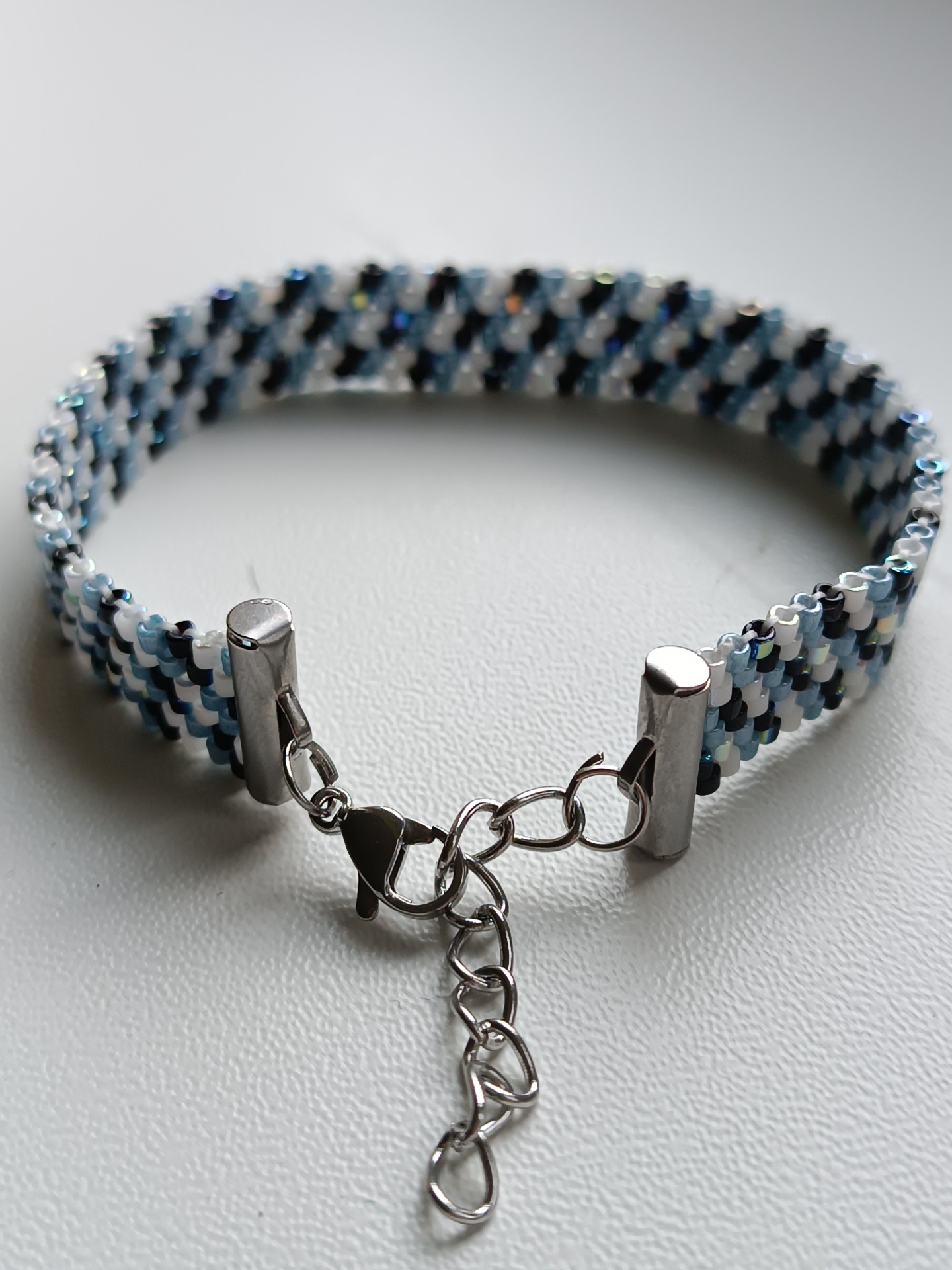 Materiál: Matubo seed 10/0, zakončení a zapínání jsou z chirurgické oceli