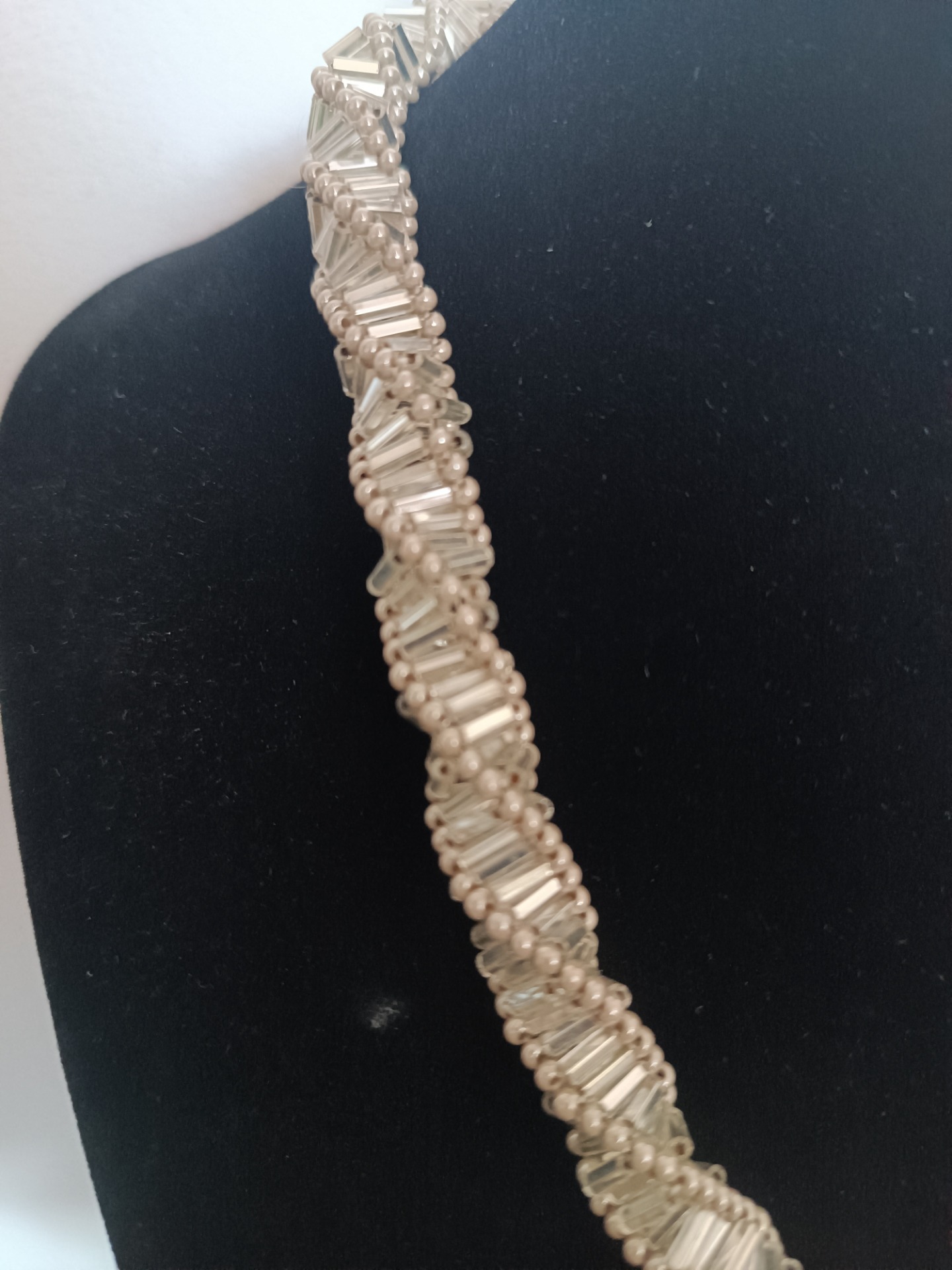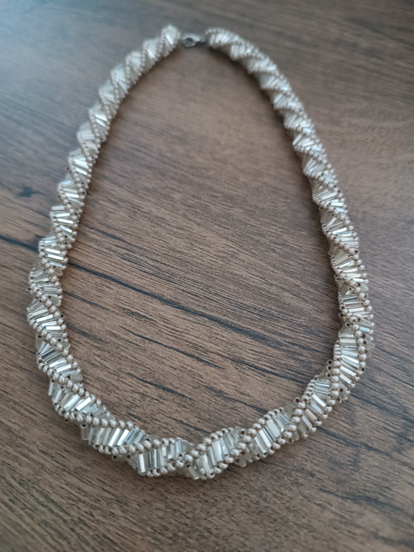 Dámský náhrdelník šitý ve tvaru spirály ze dvou druhů korálků.