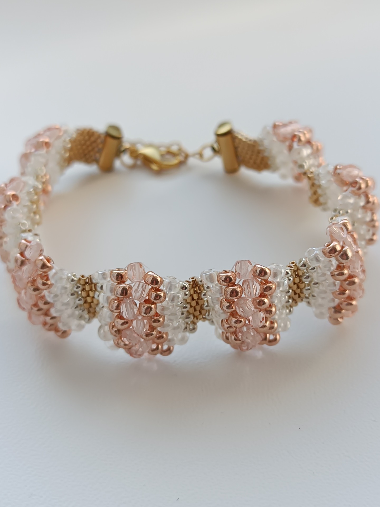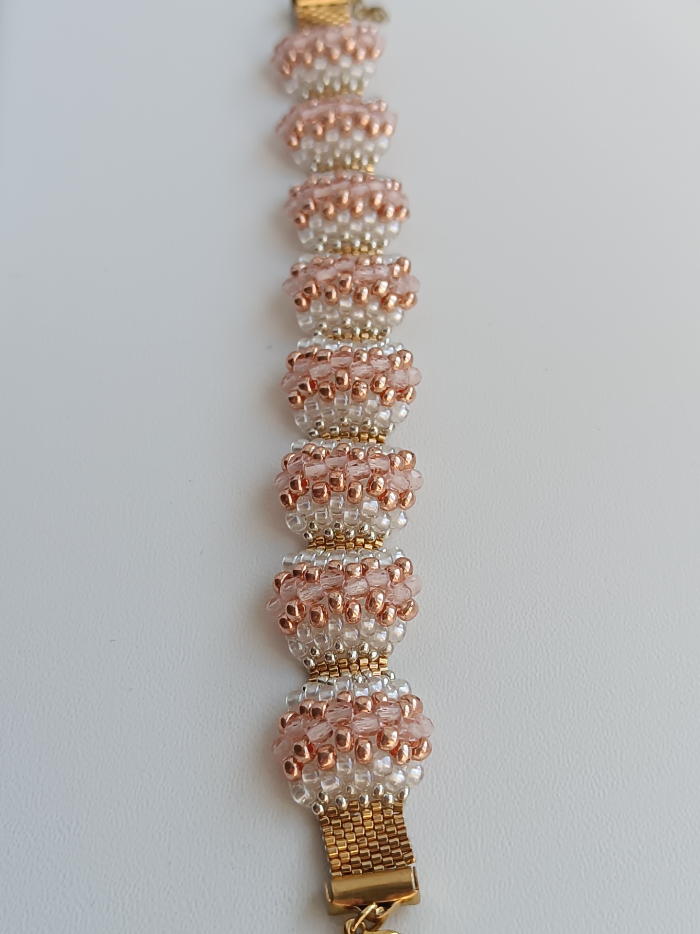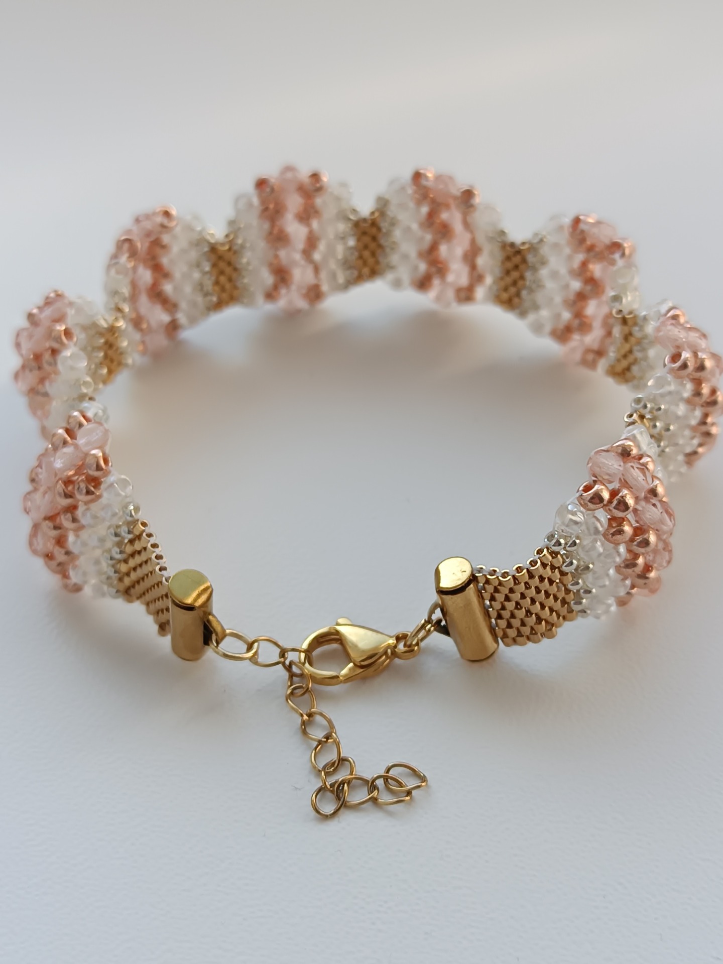 Materiál: rokajl preciosa 8/0, 11/0, Toho round 15/0, ohňovky 3mm, zakončení a zapínání je z chirurgické oceli