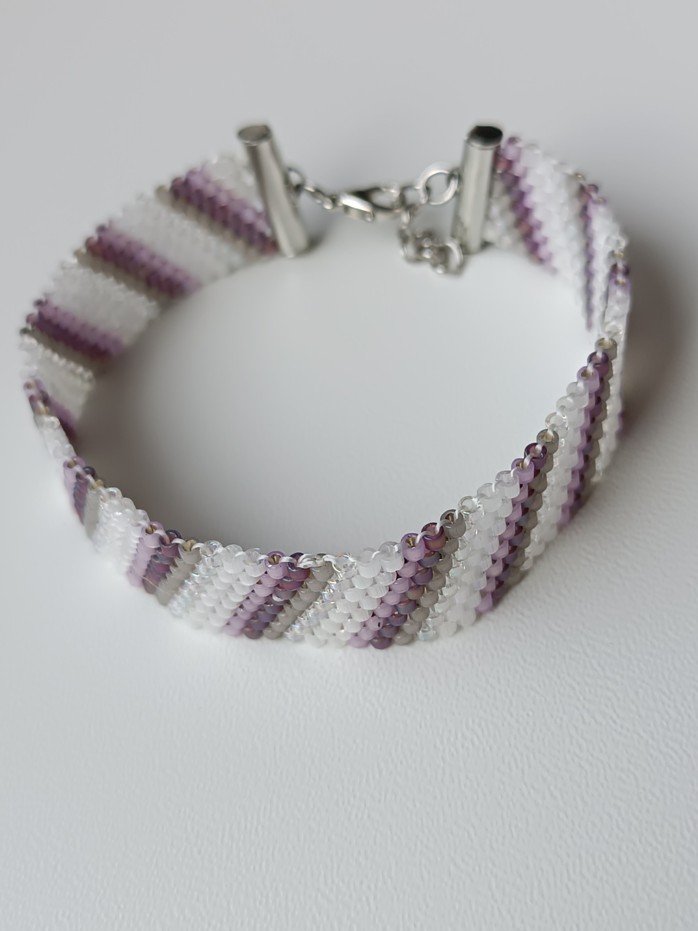 Materiál: korálky miyuki delica 10/0, zakončení a zapínání je z bižuterních komponentů