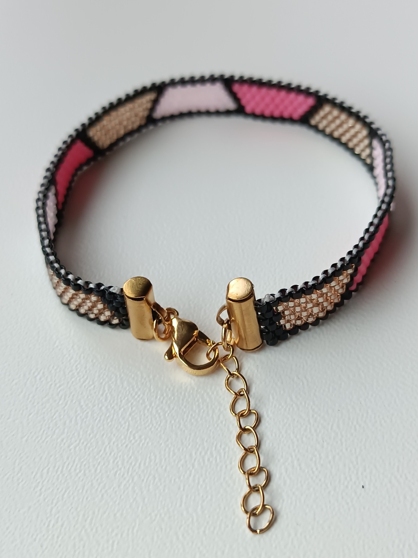 Materiál: korálky miyuki delica 11/0, zakončení včetně zapínání je z chirurgické oceli