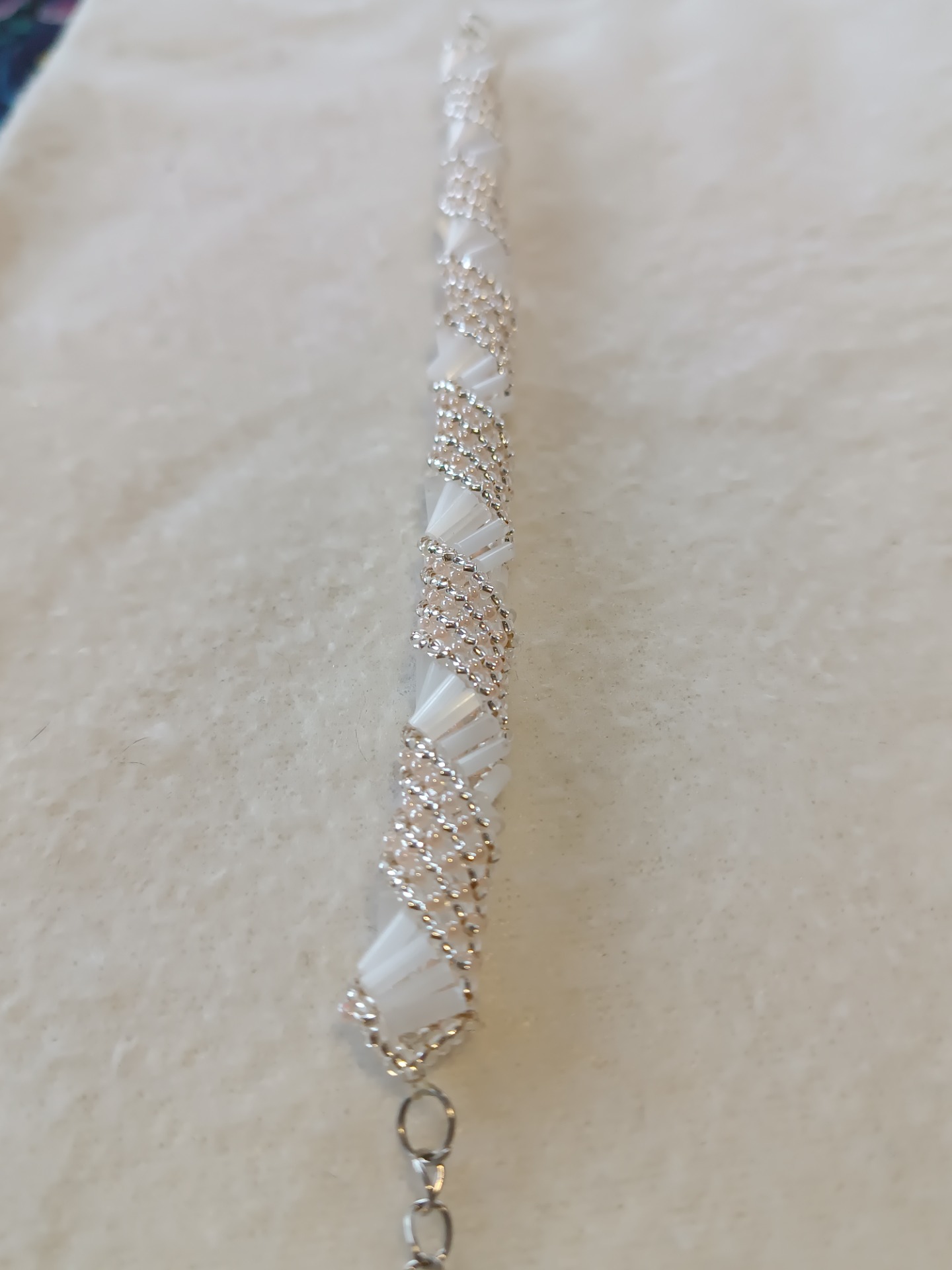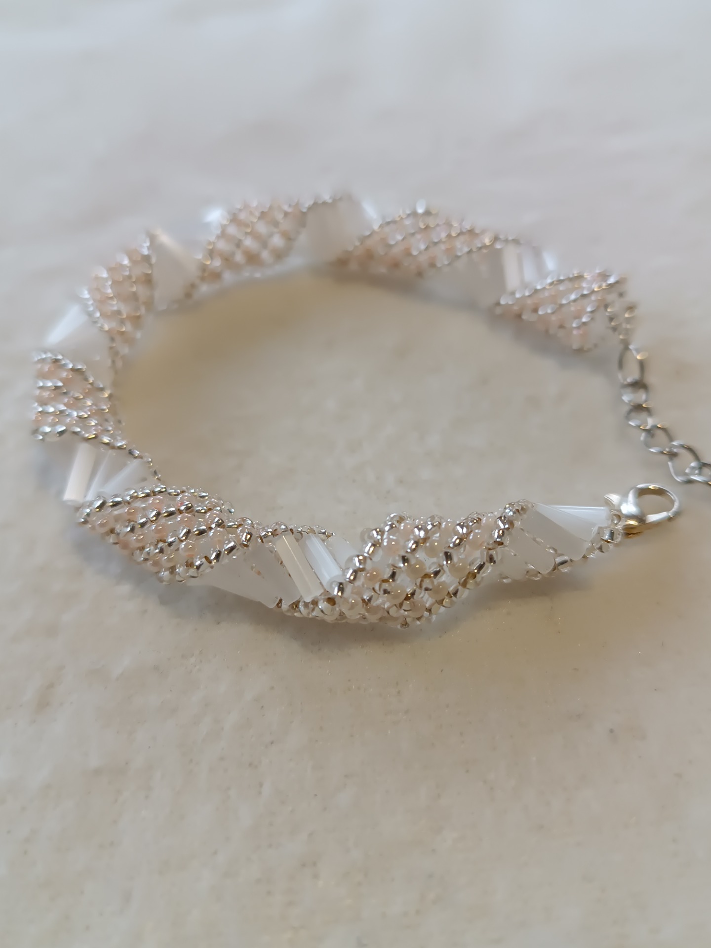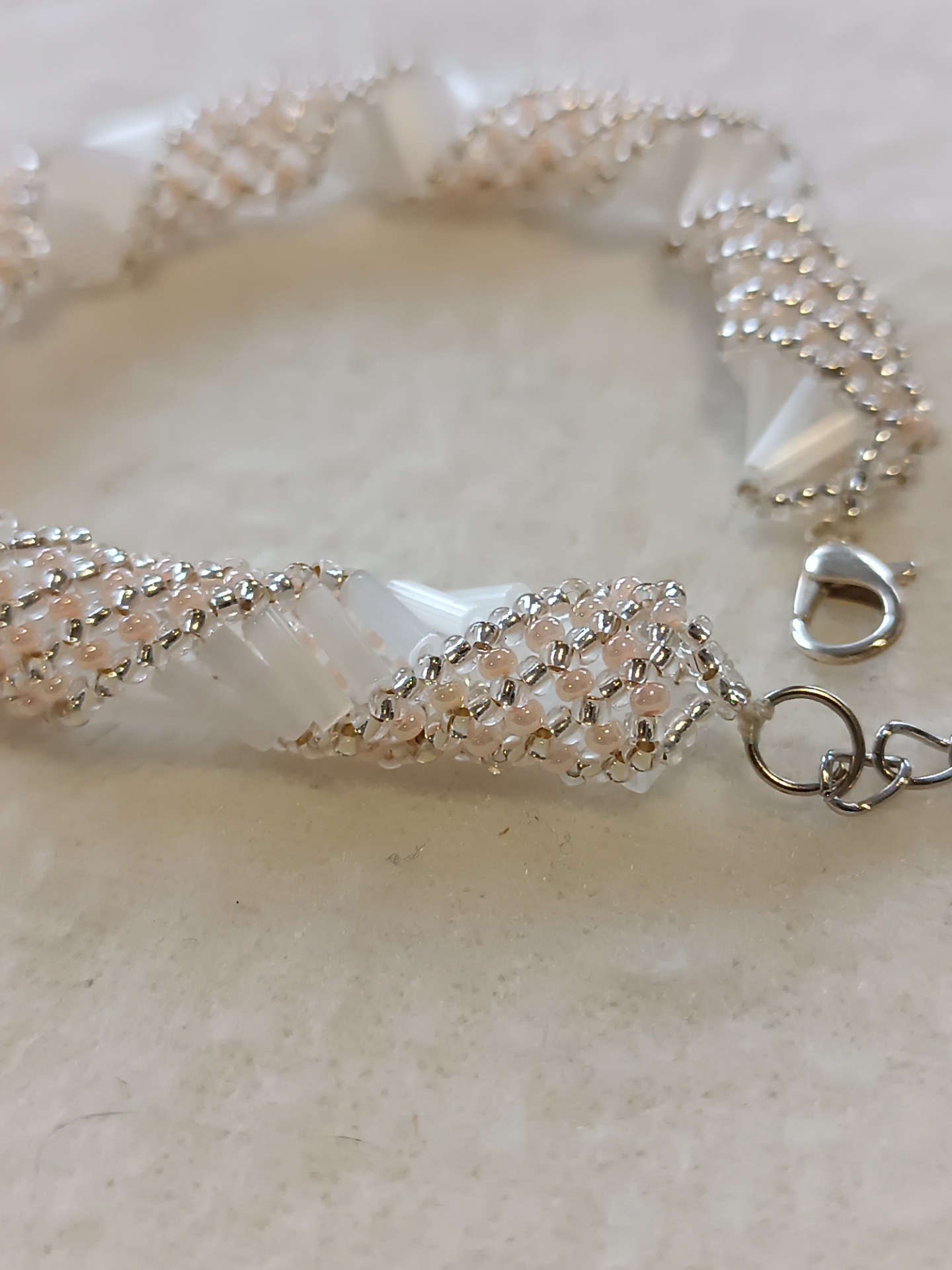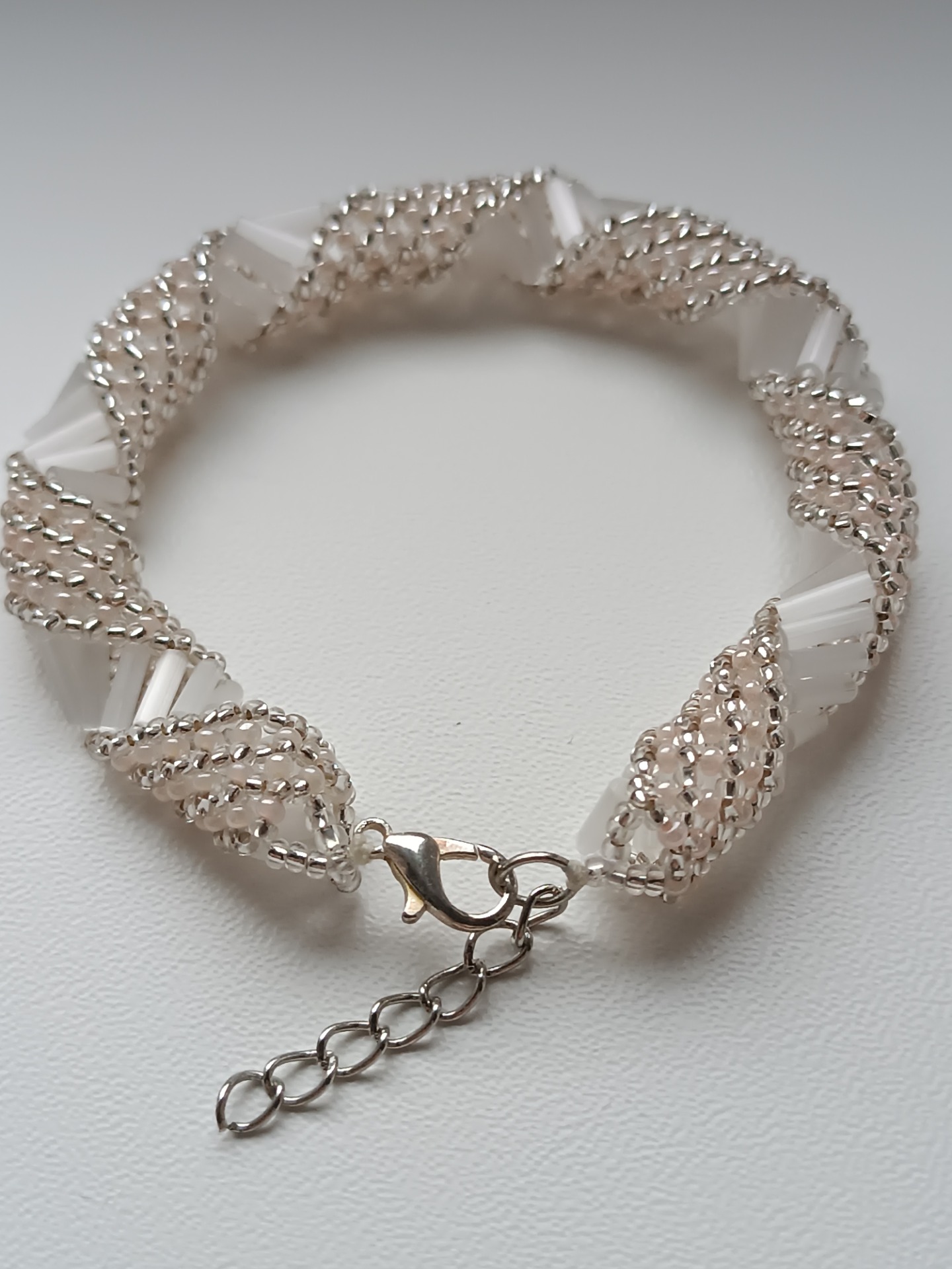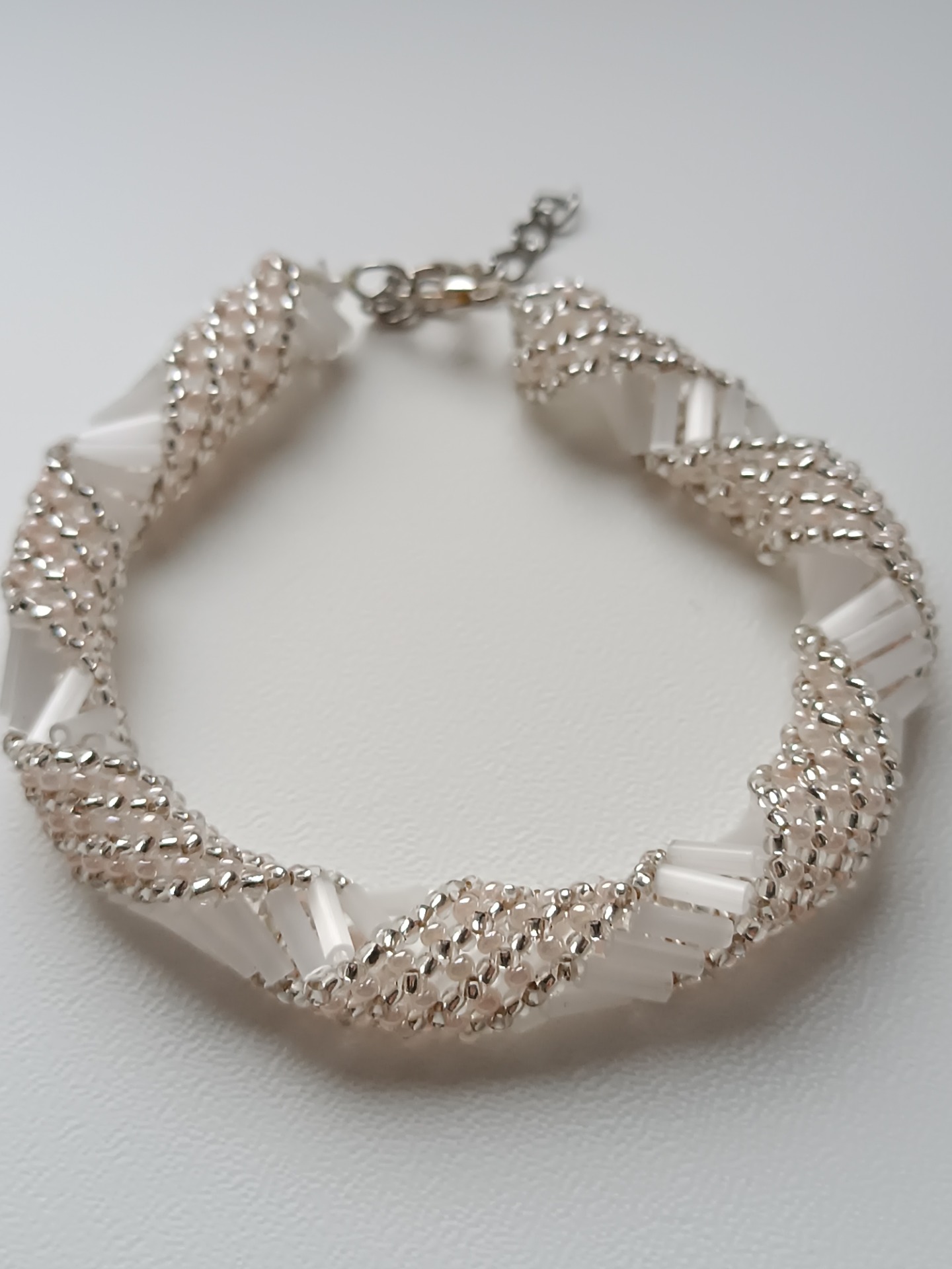 Dámský náramek šitý do tvaru spirály v kombinaci s rokajlem a tyčinkami
