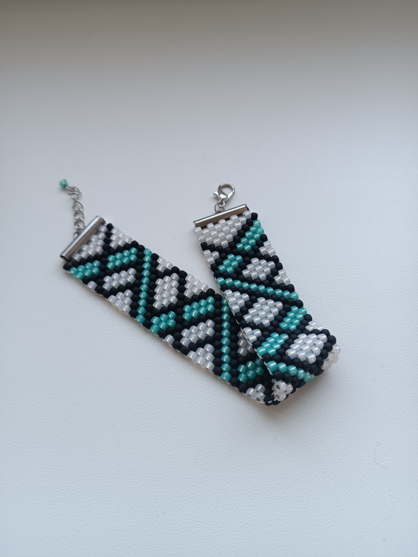 Materiál: korálky myiuki delica 8/0, zapínání a zakončení je z bižuterních komponentů
