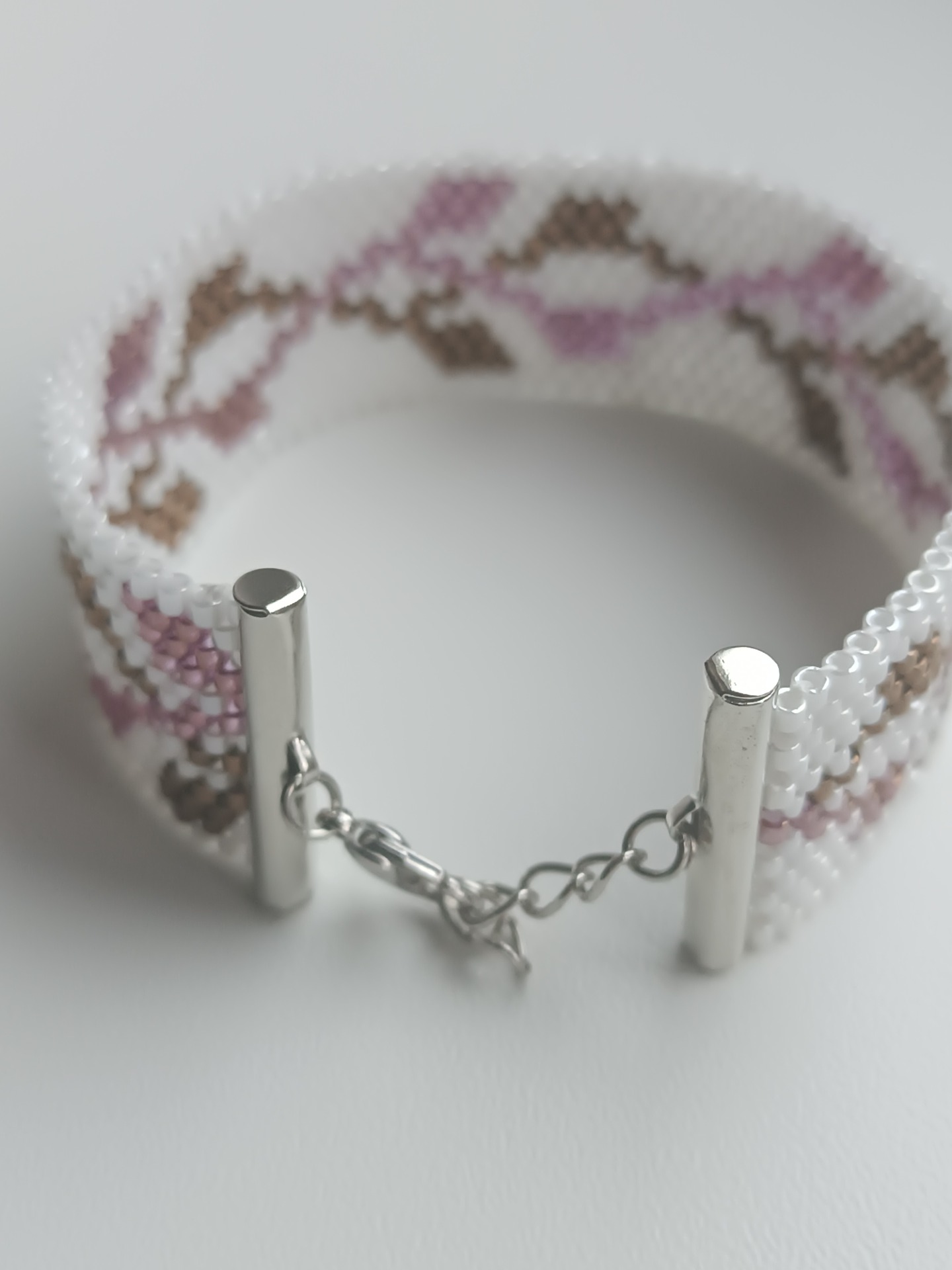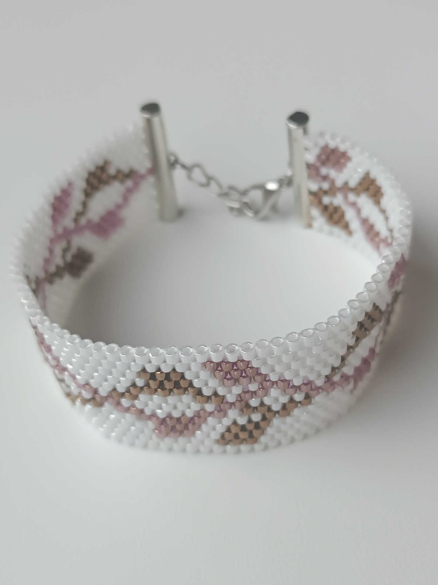 Materiál: korálky miyuki delica 10/0, zakončení a zapínání jsou z chirurgické oceli