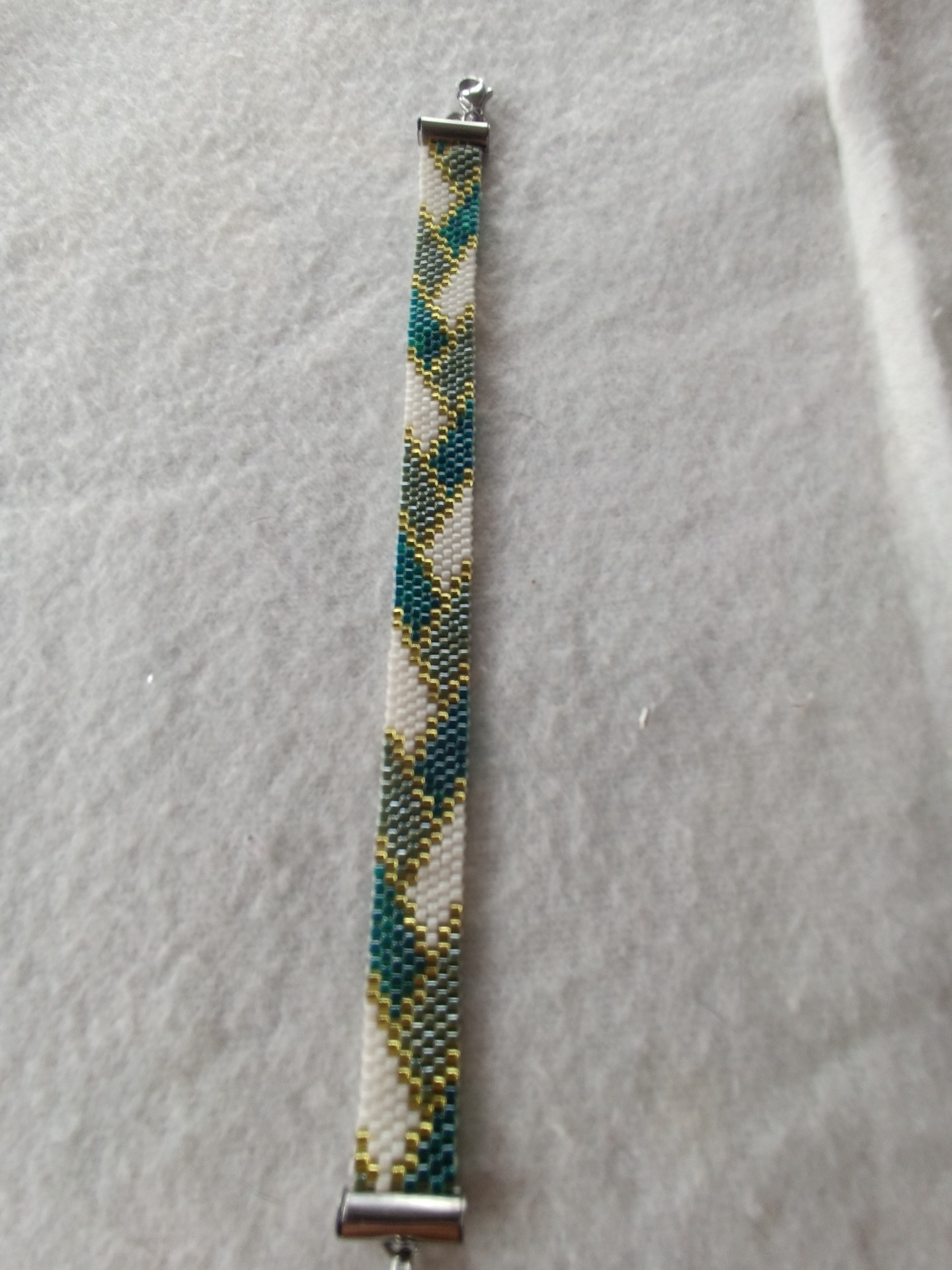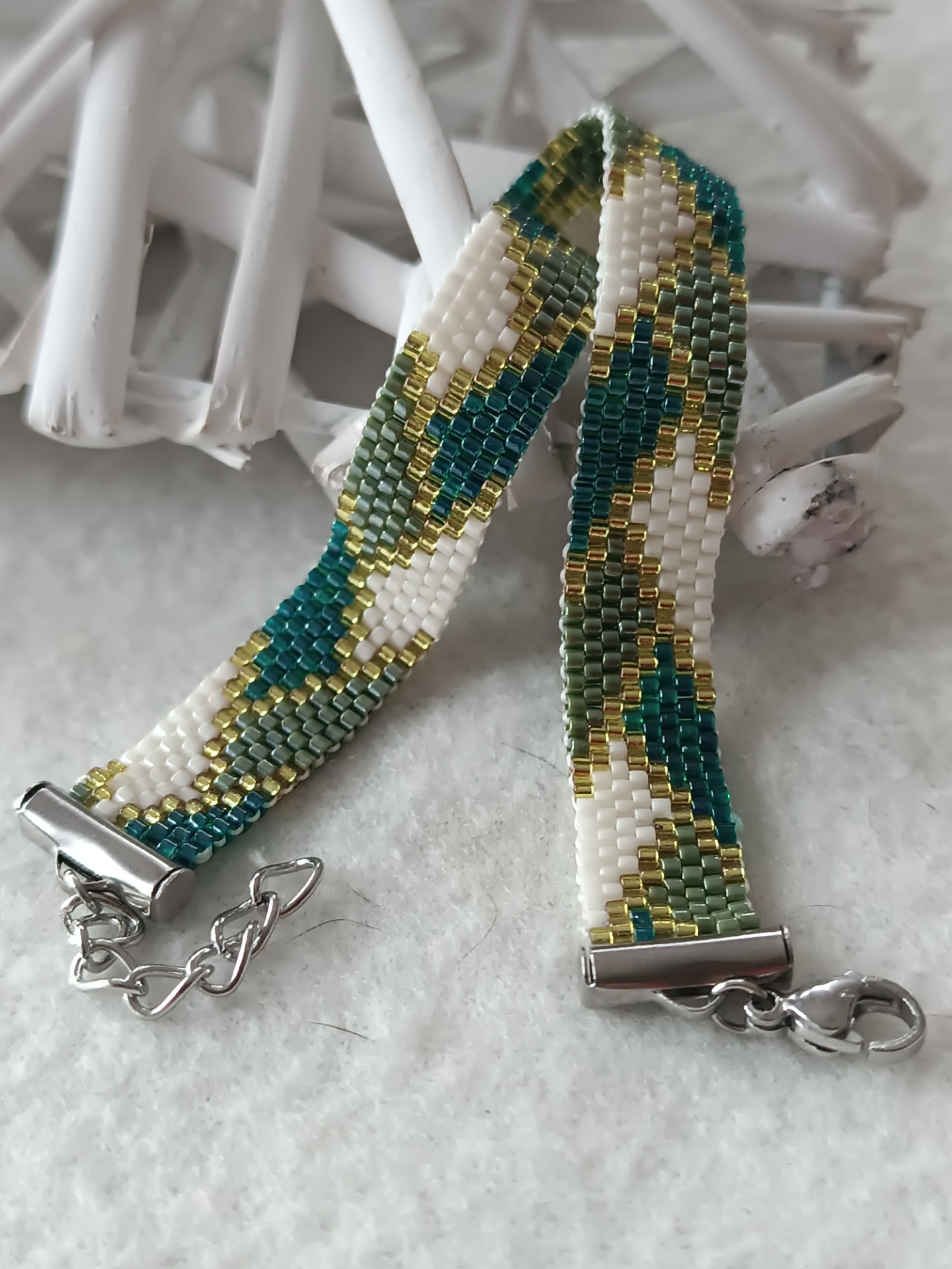 Materiál: korálky miyuki 11/0, zakončení a zapínání je z chirurgické oceli