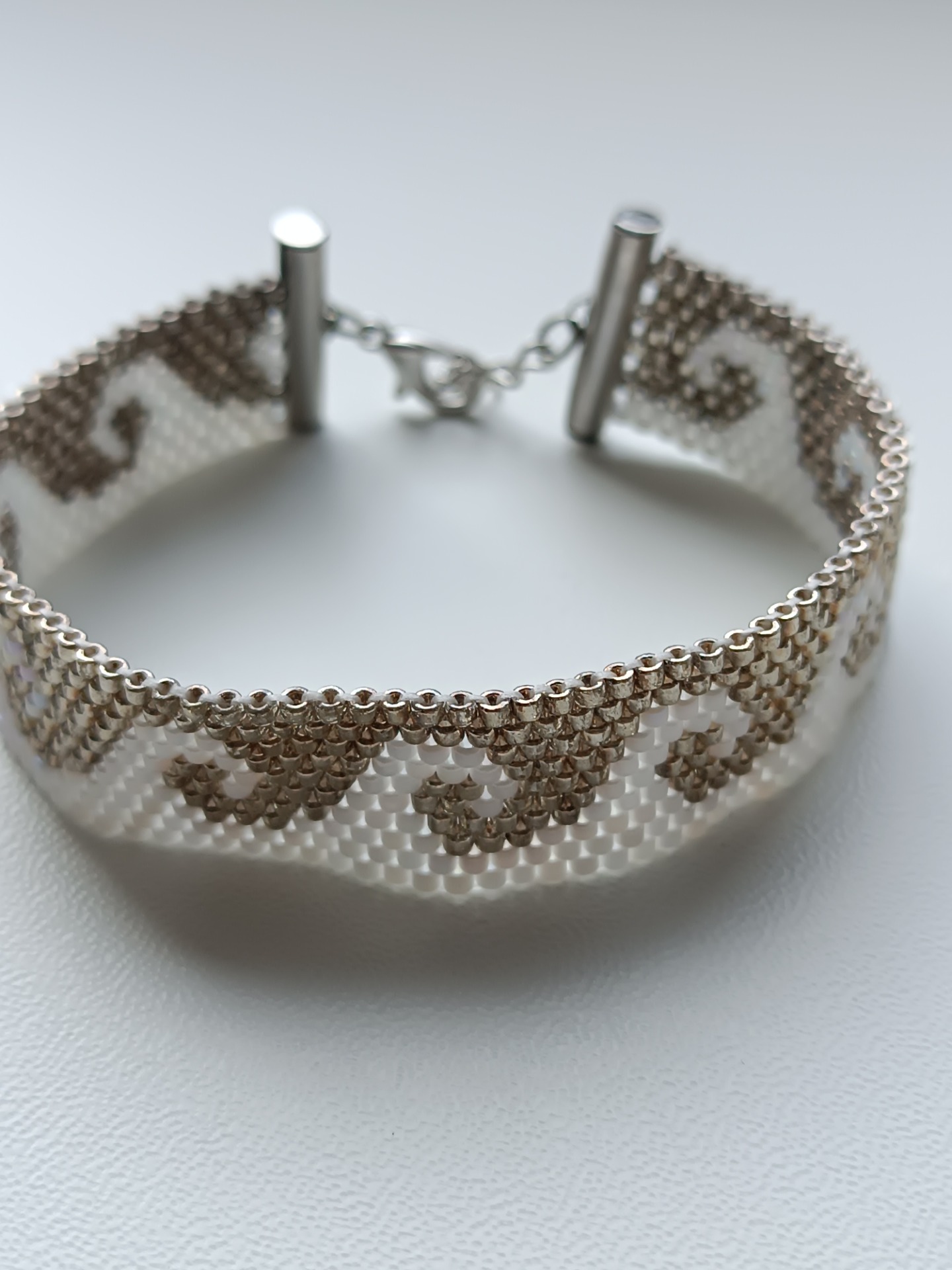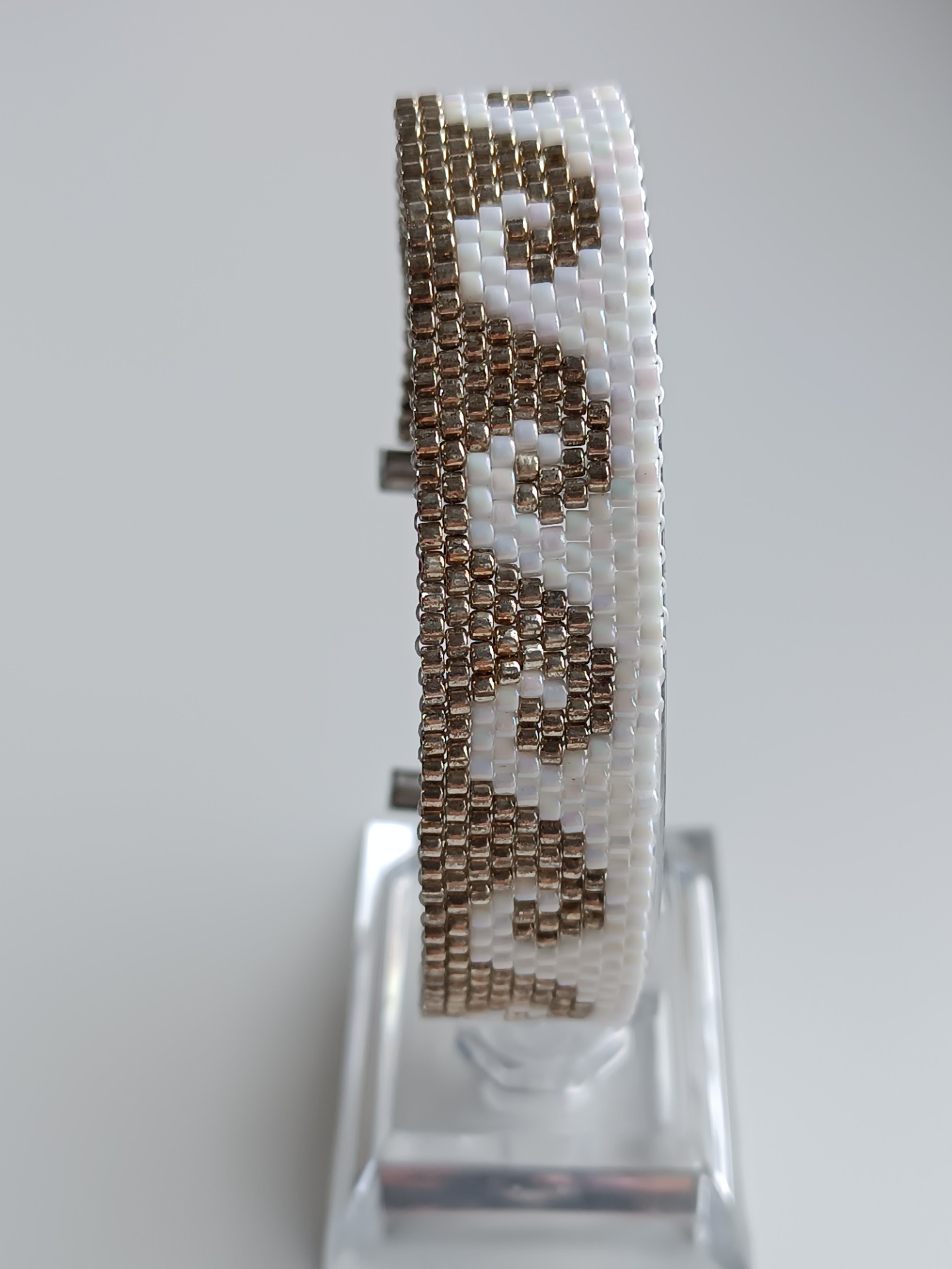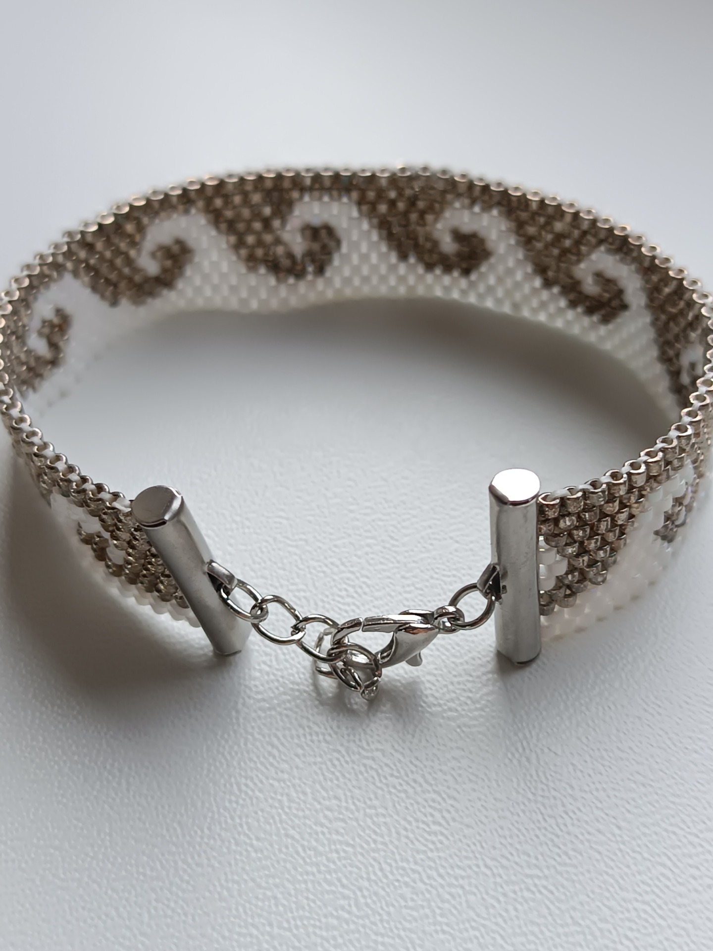 Materiál: korálky miyuki seed 11/0, zakončení a řetízek z bižuterních komponentů