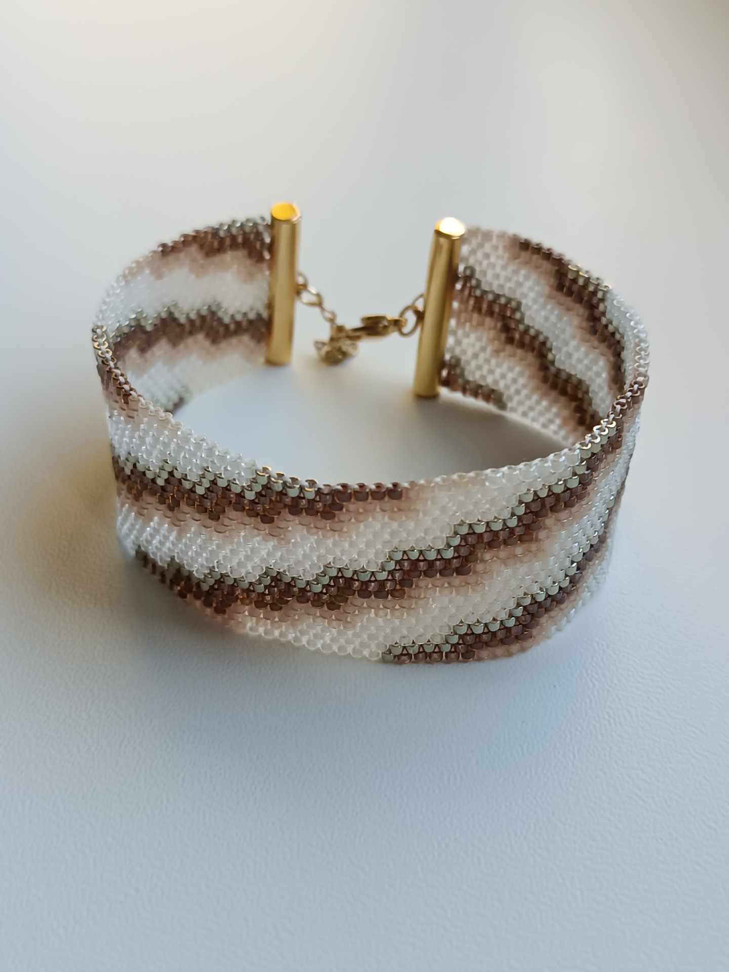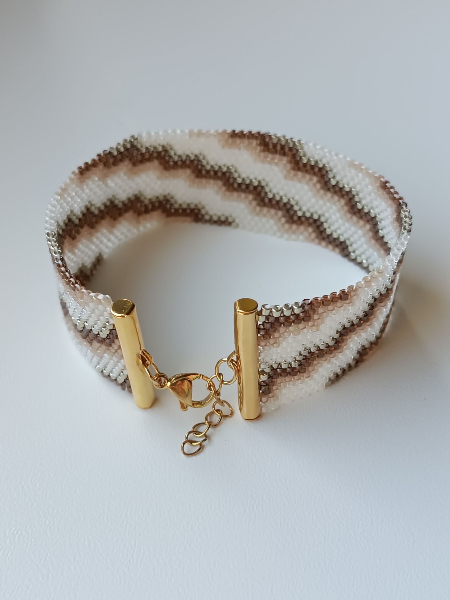 Materiál: korálky miyuki delica 11/0, zakončení a zapínání je z chirurgické oceli