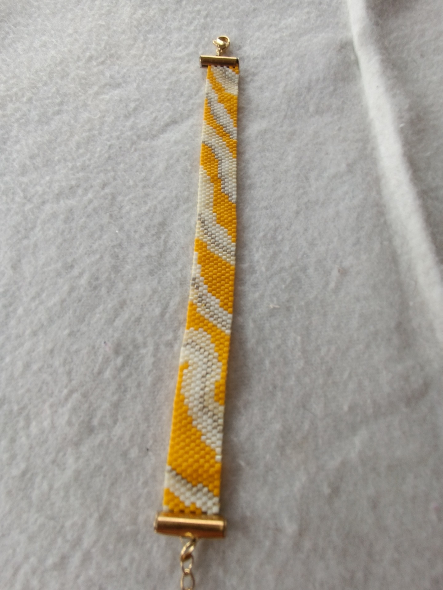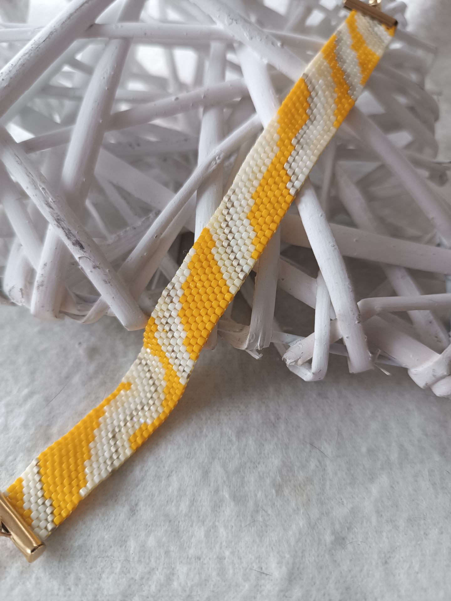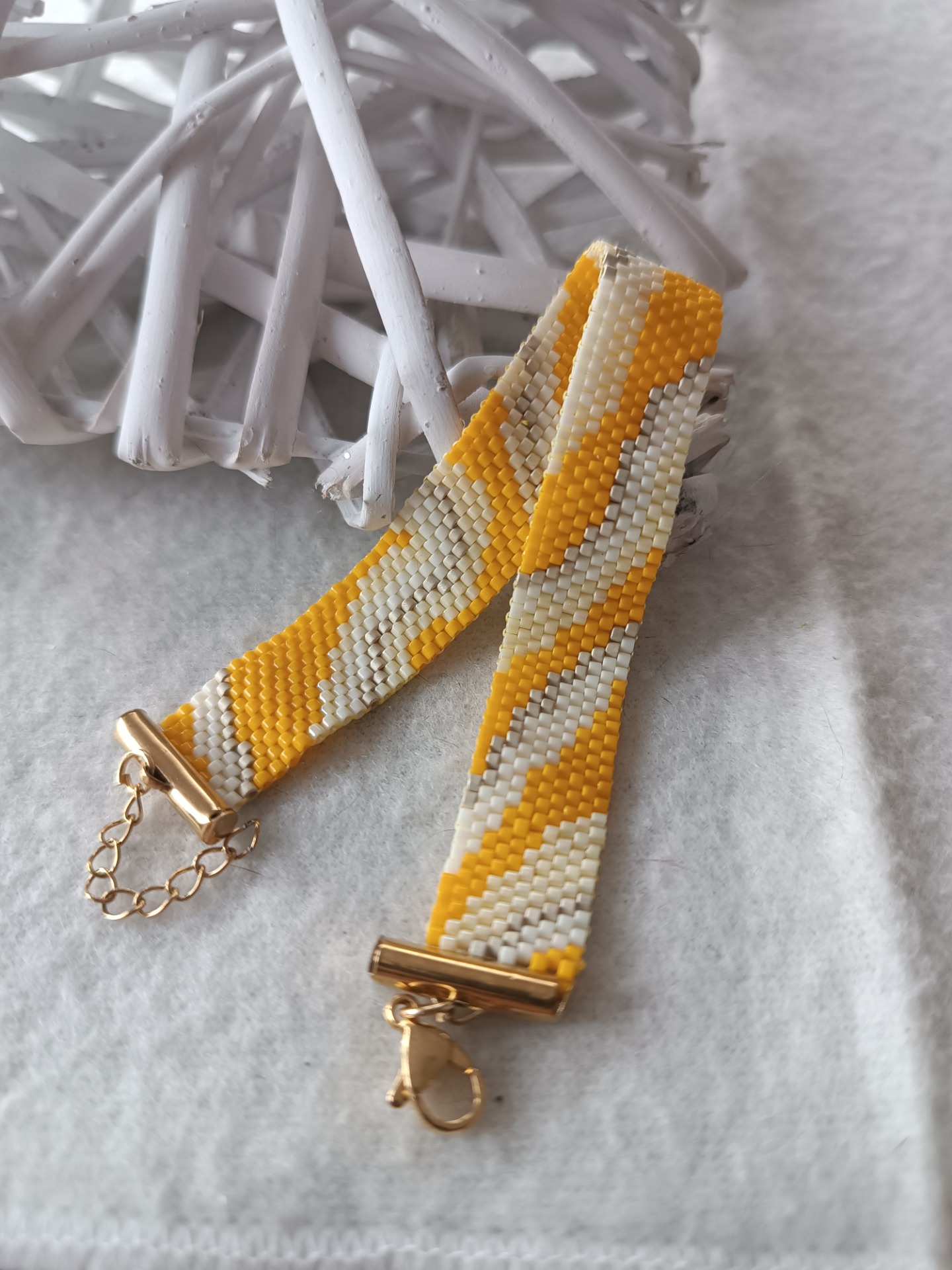 Elegantní dámský náramek šitý peyote stehem z miyuki korálků ve žlutých odstínech.