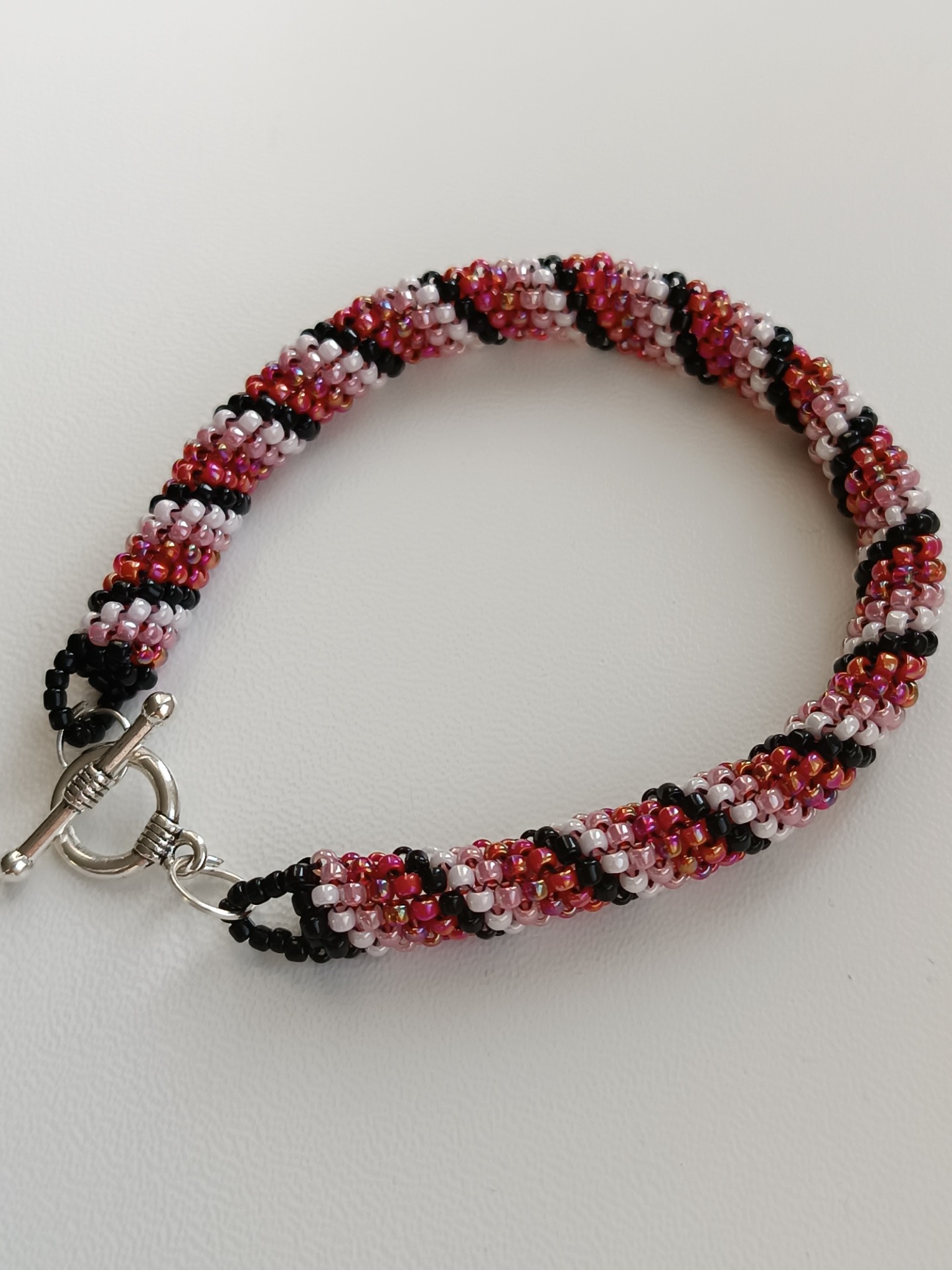 Materiál: TOHO korálky 11/0, u náramku je americké zapínání, afroháčky a zapínání je z bižuterních komponentů
