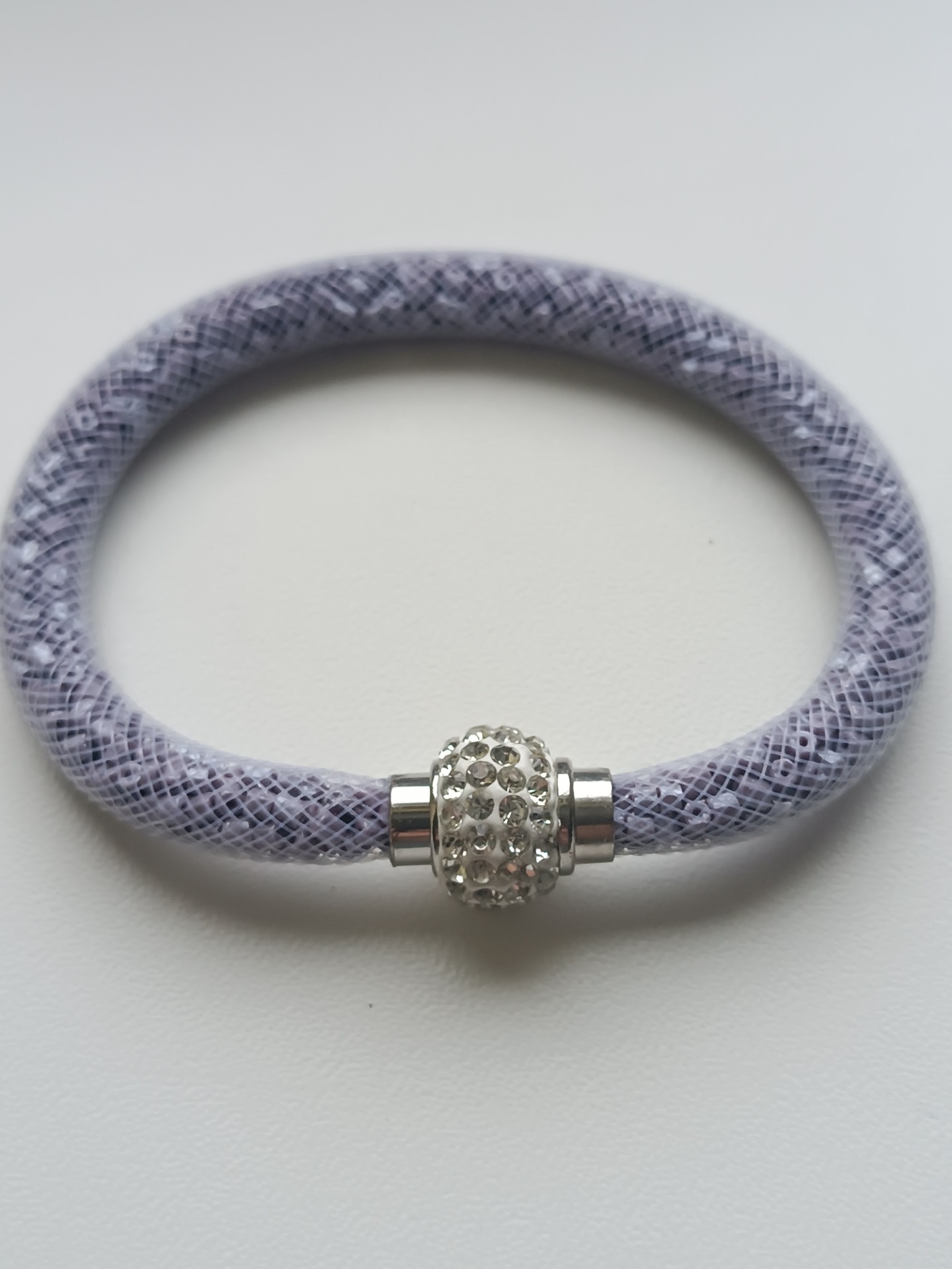 Materiál: bílá síťka , štěpky rokajlu 0,2mm, magnetické zapínání s kamínky, které je z bižuterního komponentu