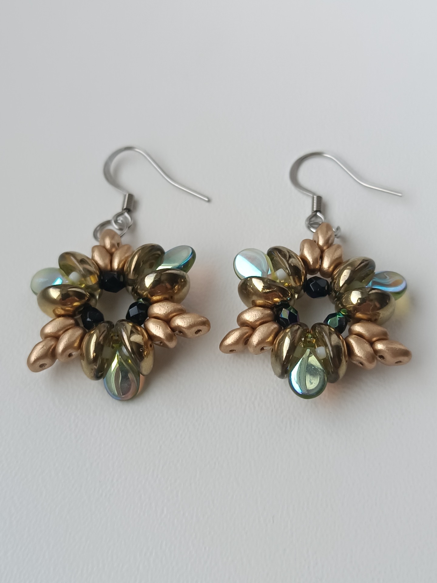 Materiál: korálky Pip, Piggy, broušené ohňovky, Superduo, Toho Round, afroháčky jsou z chirurgické oceli